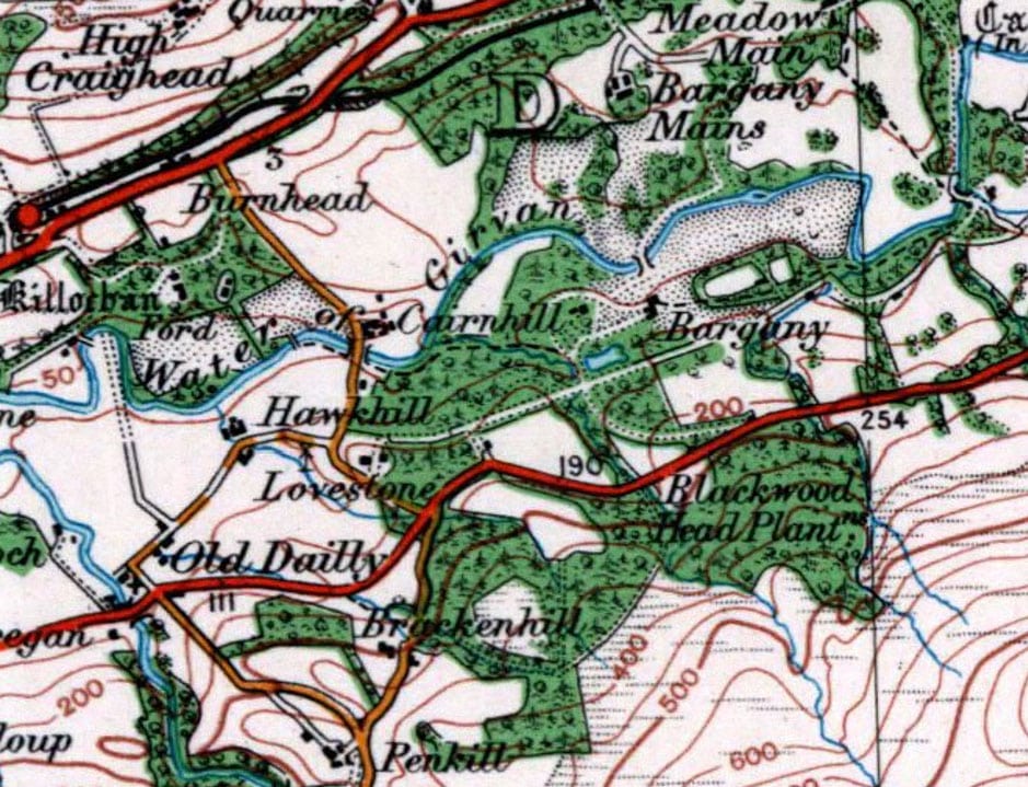Map of Bargany Estate showing Lovestone Plantation, Meadow Main, and the colliery.